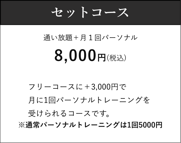 ジム/パーソナルトレーニングで自分に合ったペースで通っていただけます。